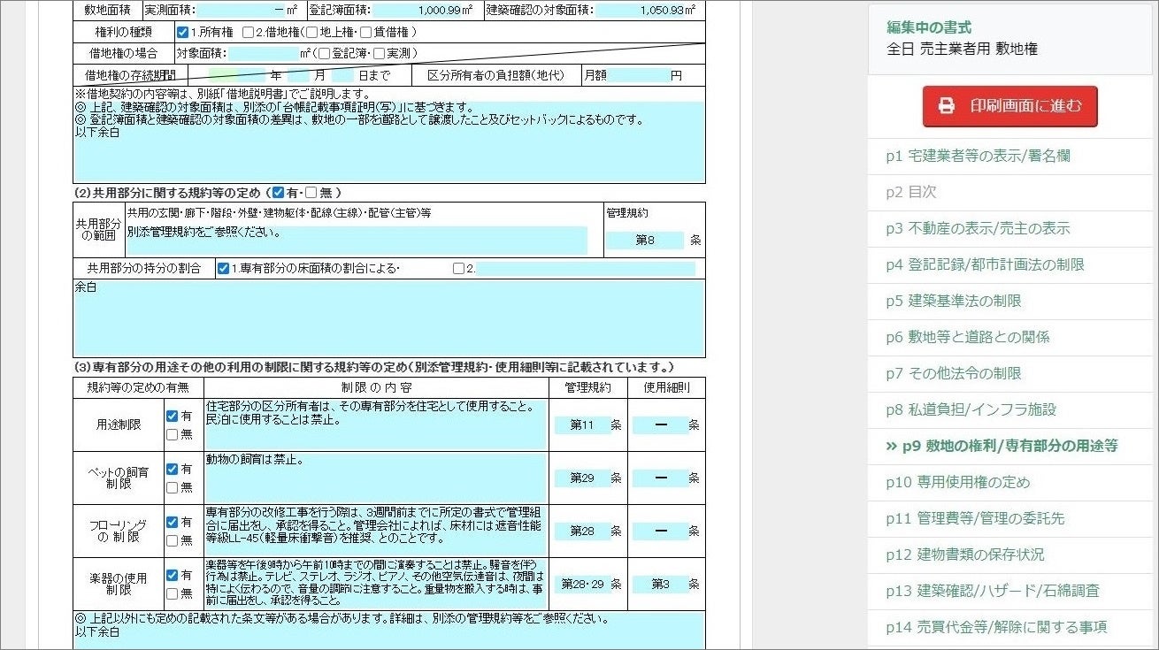 - 入力情報から、自動的に適切な文章が作成され、利用したい重要事項説明書・売買契約書に展開されます。