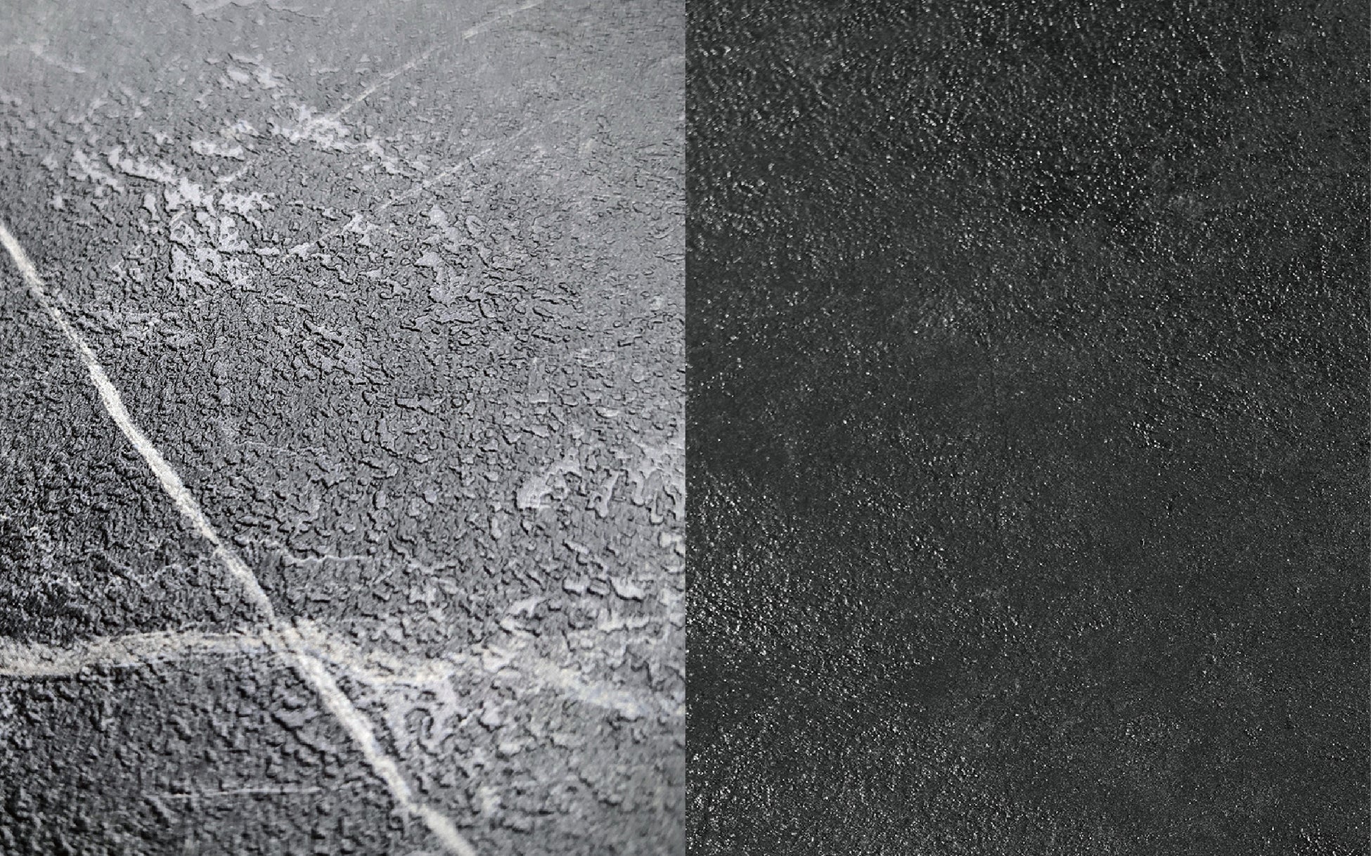 ゴツゴツとした粗削りなストーンのテクスチャーや、エイジングされた自然の石やアンティークのセラミックをイメージさせるデザインなど、化粧板の枠を超えた革新的なテクスチャーです。