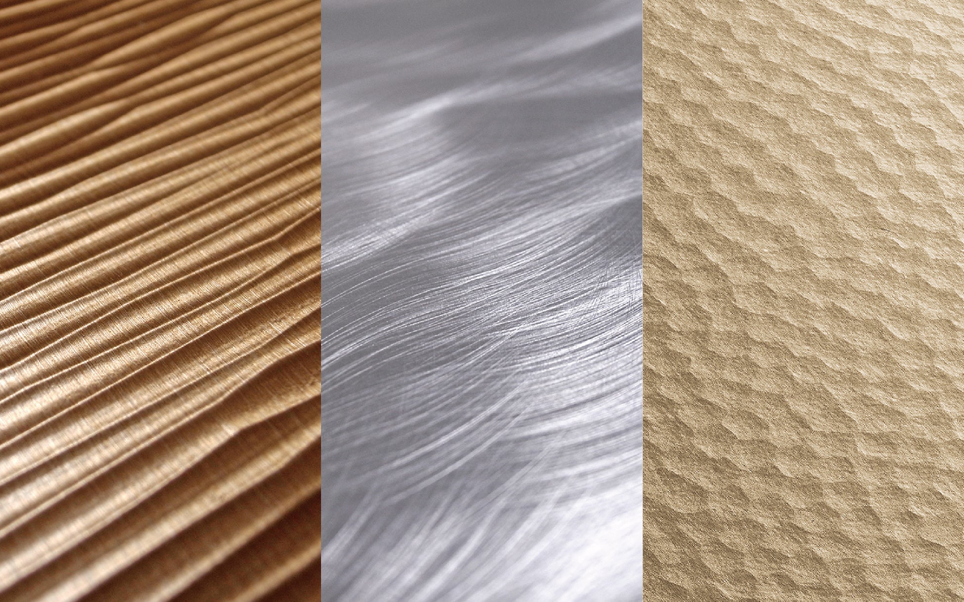 多様な物が共存する空間の中で魅せるエレガンスデザイン。 空間を作る人、使う人の心に響くハイクオリティなメタル化粧板が登場しました。
