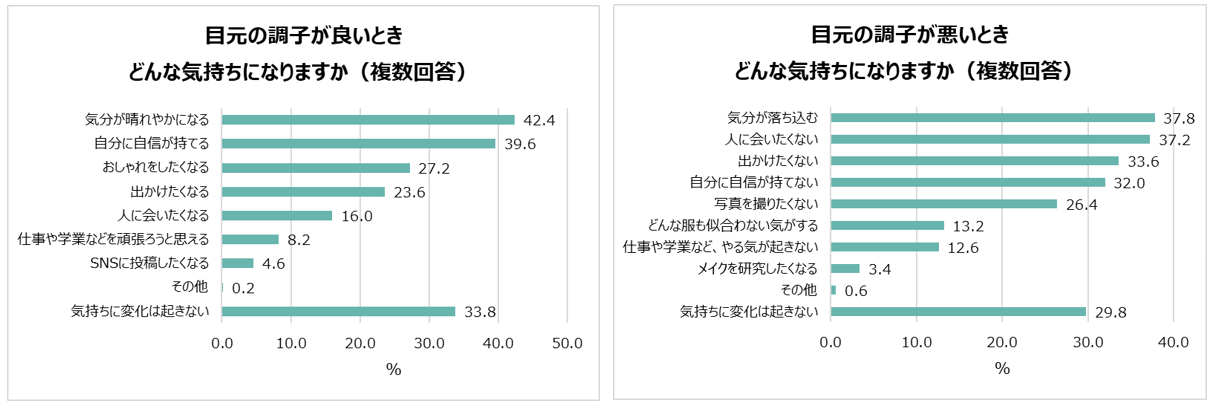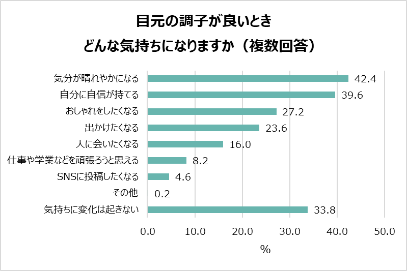 1.約7割の女性が、目元の調子で気持ちが変わる。調子が良いと「気分が晴れやかになる」人は約4割