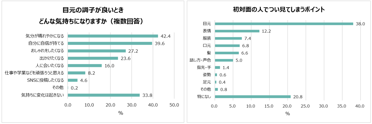 20~40代女性の“目元”の重要度が明らかに!目元の調子で気持ちが変わる女性は約7割。女性たちが初対面で見ているポイント1位「目元」2位「表情」。20代の約5人に1人がカラコンを使用。