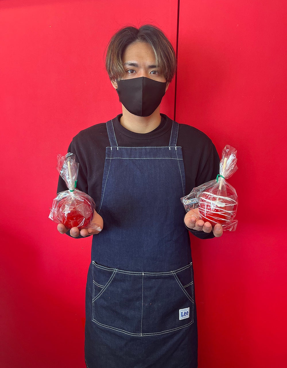 大学時代に県外でりんご飴を食べて衝撃を受けたという店長の福留京介さん。自分でも作ってお店を出したいと試行錯誤をして研究を重ねてきました。日がたっても溶けずにパリッとしていること、歯について食べづらさがないことにこだわり到達した飴。いろいろと試した上で厳選した砂糖を使い、配合も厳密に調整して出来上がった飴はパリパリ。食べて感動の食感です。