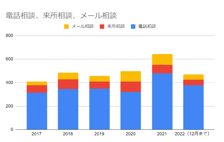 | 参考:電話相談376 件、面接相談 のべ50件、メール相談 42件(2022年度 4月~12月) |