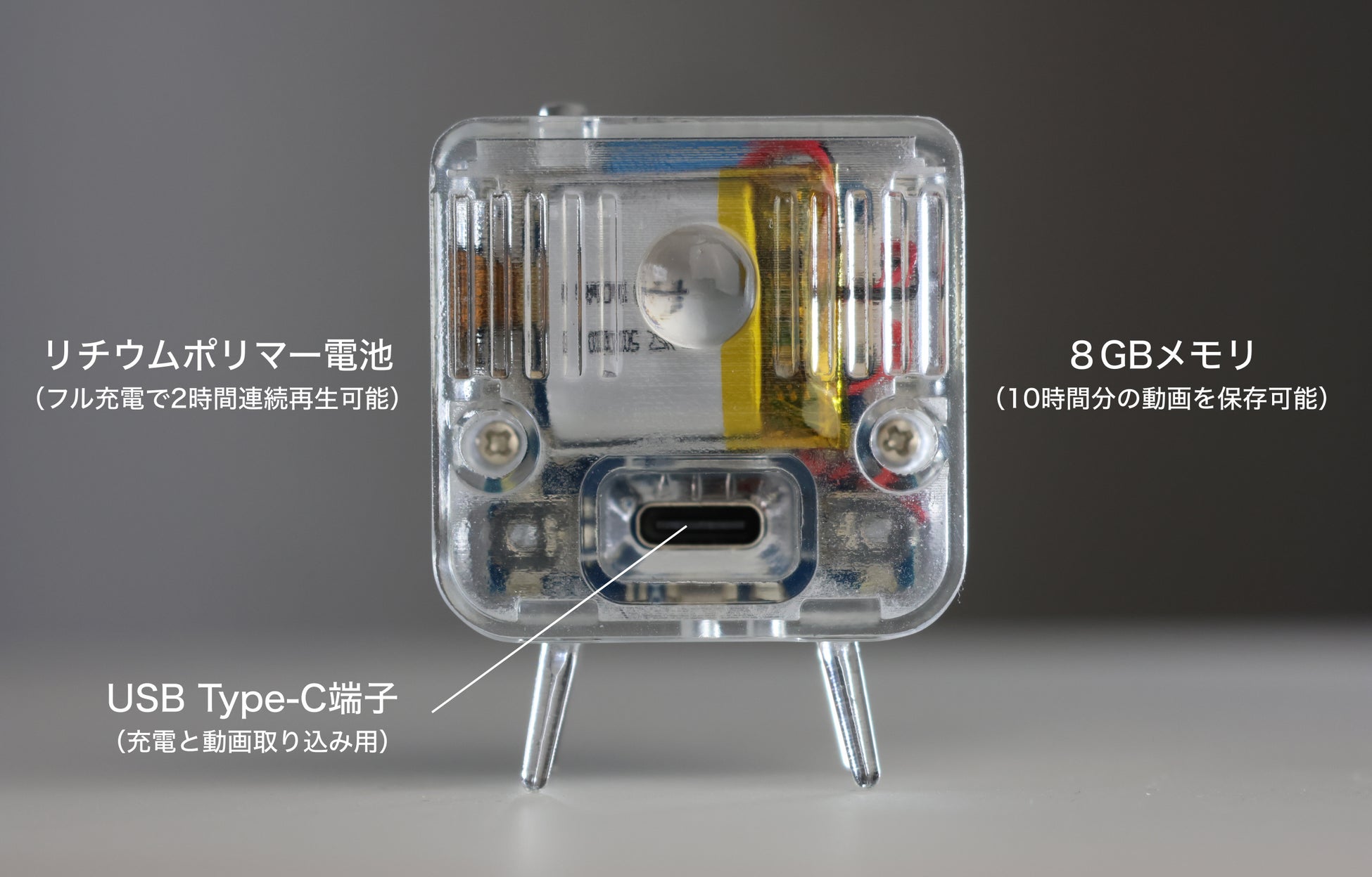 - USB-Cケーブル経由でTinyTV Miniにお気に入り動画を簡単にアップロード可能