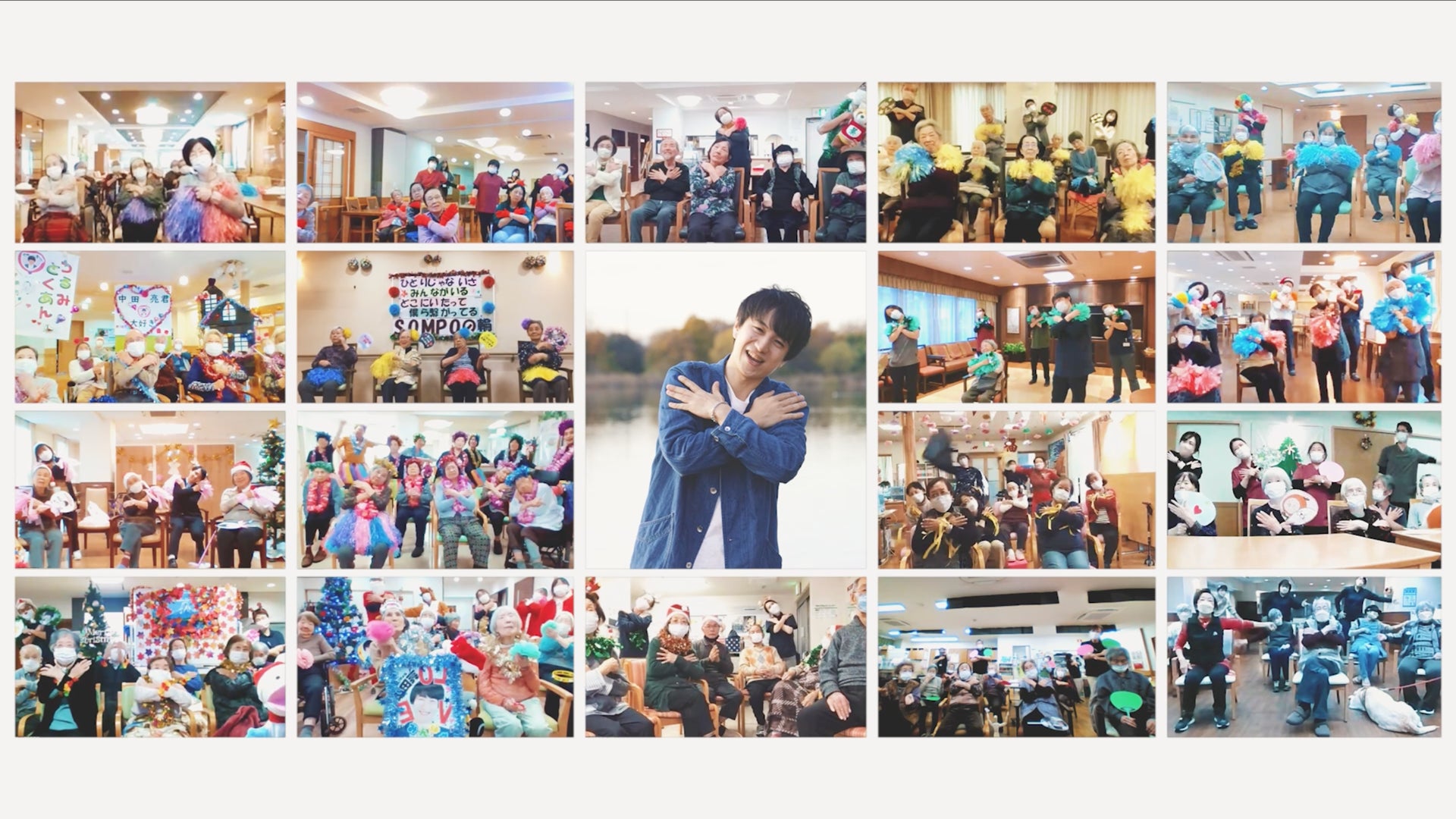 懐メロプリンスこと中田亮が、SOMPOケア株式会社様(所在地:東京都品川区、代表取締役社長:鷲見 隆充)の高齢者施設の「推し活」中の皆様と一緒に新曲のミュージックビデオを企画制作。300名を超える高齢者が出演し、文字通り「みんなのウタ」となりました。