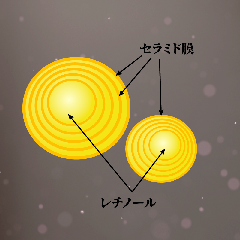 セラミドを界面活性剤不使用でリポソーム化しレチノールを内包したコンプレックス