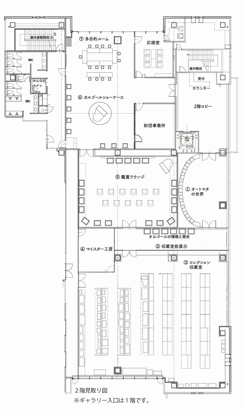 「永守コレクションギャラリー」では、シリンダーオルゴール52点、ディスクオルゴール71点、オートマタ(自動カラクリ人形)92点など音楽史・美術史上希少なコレクションを347点有しております。また、本ギャラリーは、作品を展示するだけではなく、自動演奏楽器の歴史に残る100年以上昔に作られたオルゴールやオートマタの音色と“カラクリ”に没入できる、体験型施設です。世界的価値のある作品を贅沢に“ラウンジ鑑賞”できる他、通常見ることのできない“収蔵室”をガラス越しに見学でき、“マイスター工房”では、オルゴールのエンジニアによってコレクションの保守・修復や研究開発が行われており、その様子もご覧いただけます。