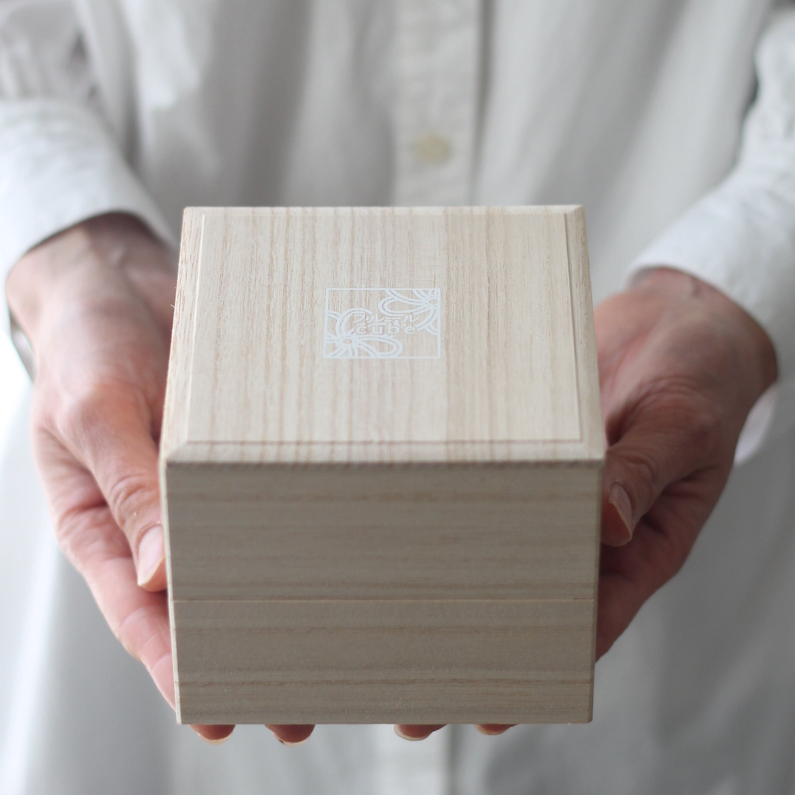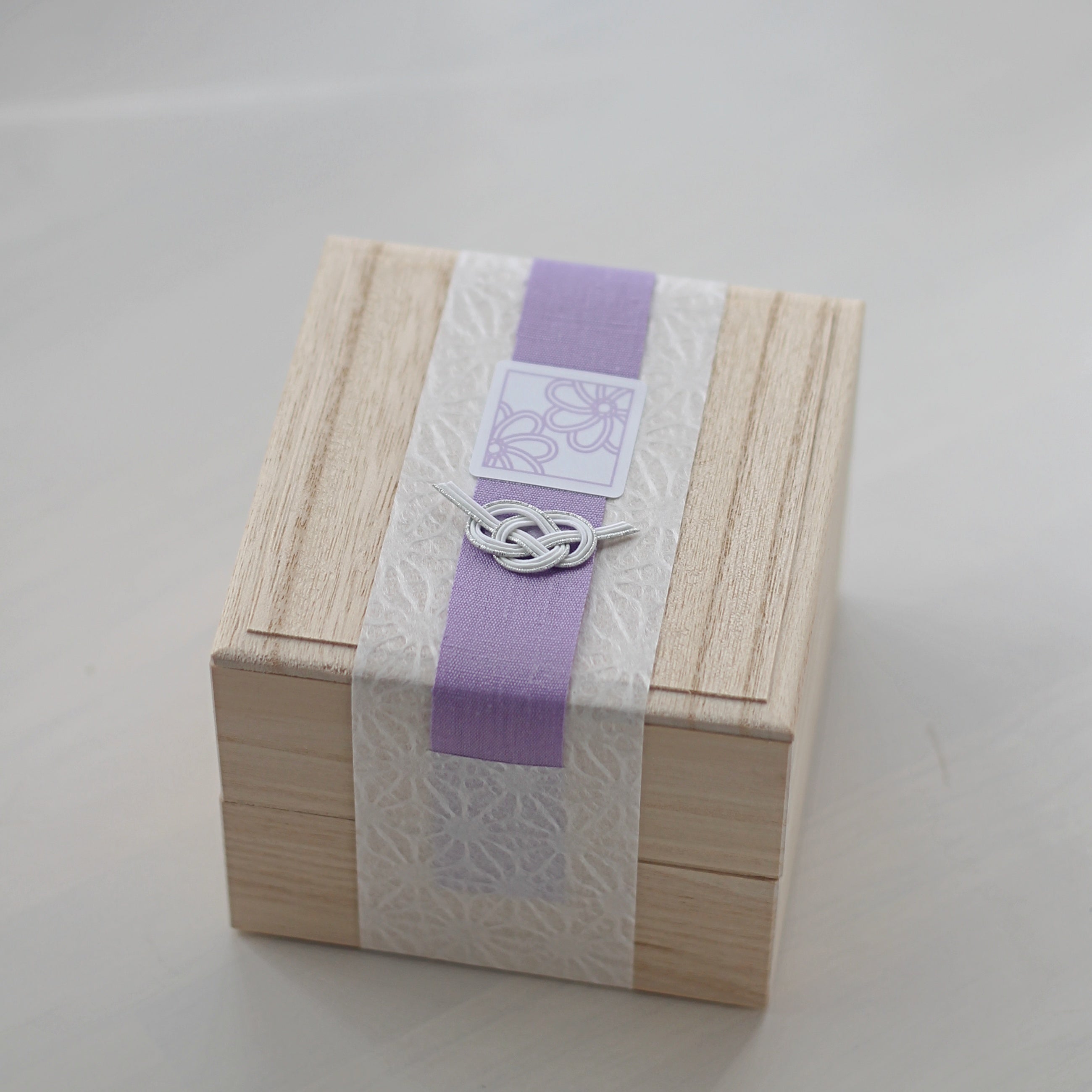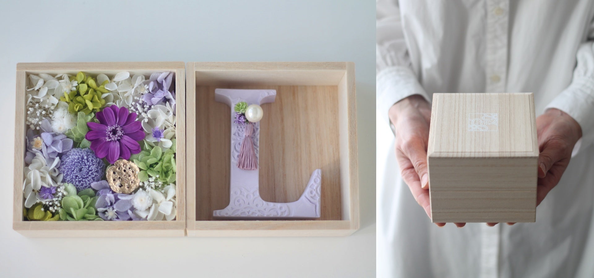 桐箱入りのお花とイニシャルアロマストーンをセットにしたものです。