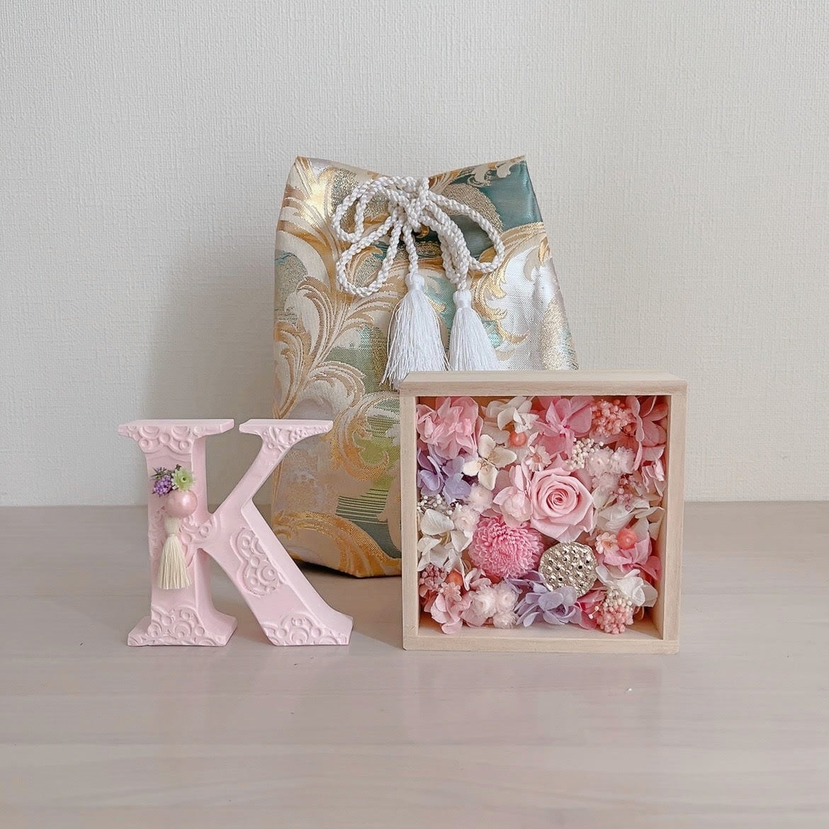 お花はプリザーブドフラワー*を使用しています。桐箱に直接アレンジしているのでそのまま立てて飾ることも出来ます。リビングに似合う色使いと可愛いデザインにこだわりました。