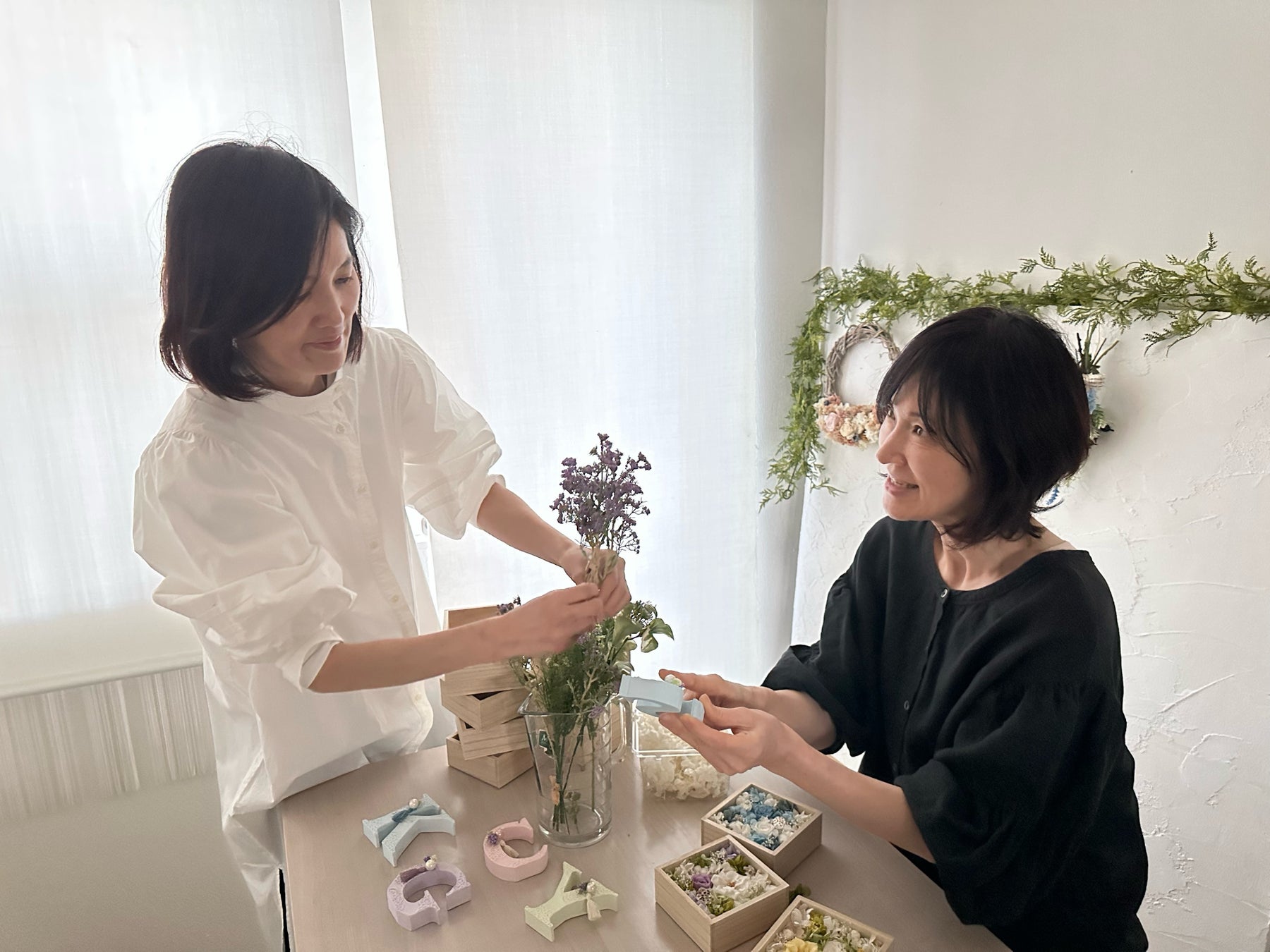 社名のスゥールとはフランス語で「姉妹」という意味です。フローリスト(姉)とアロマコーディネーター(妹)の二人で運営しています。