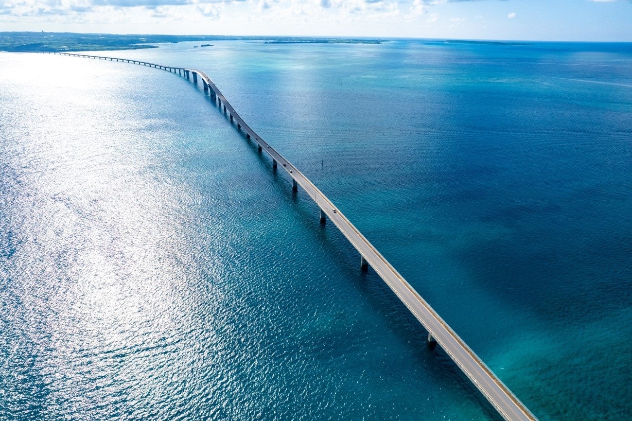 宮古島市と伊良部島は伊良部大橋によって結ばれ、まるで海の上をドライブするかのような絶景スポットとして知られています。周辺には17エンドビーチや通り池、三角点などフォトジェニックなスポットが多く集まっています。