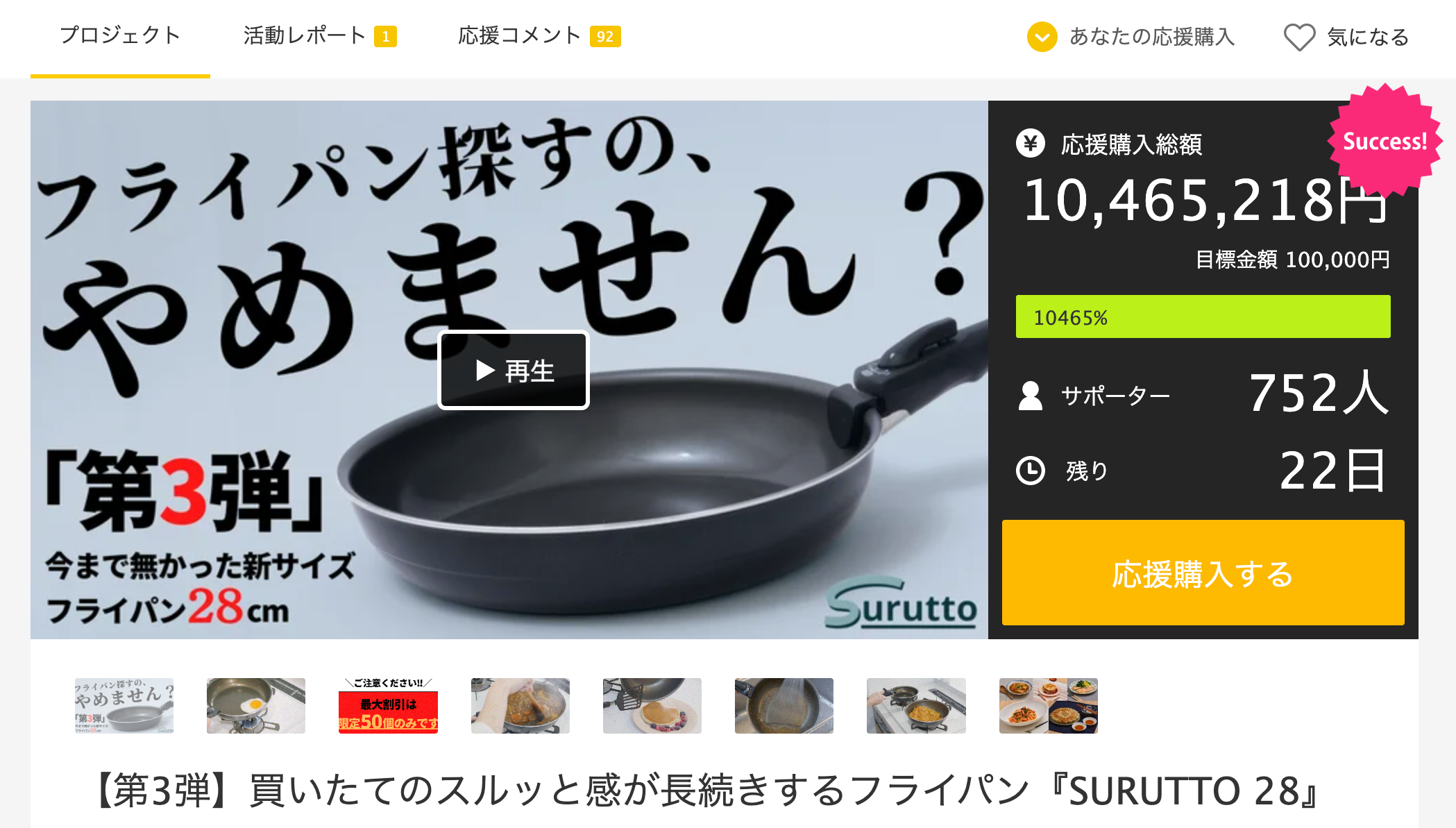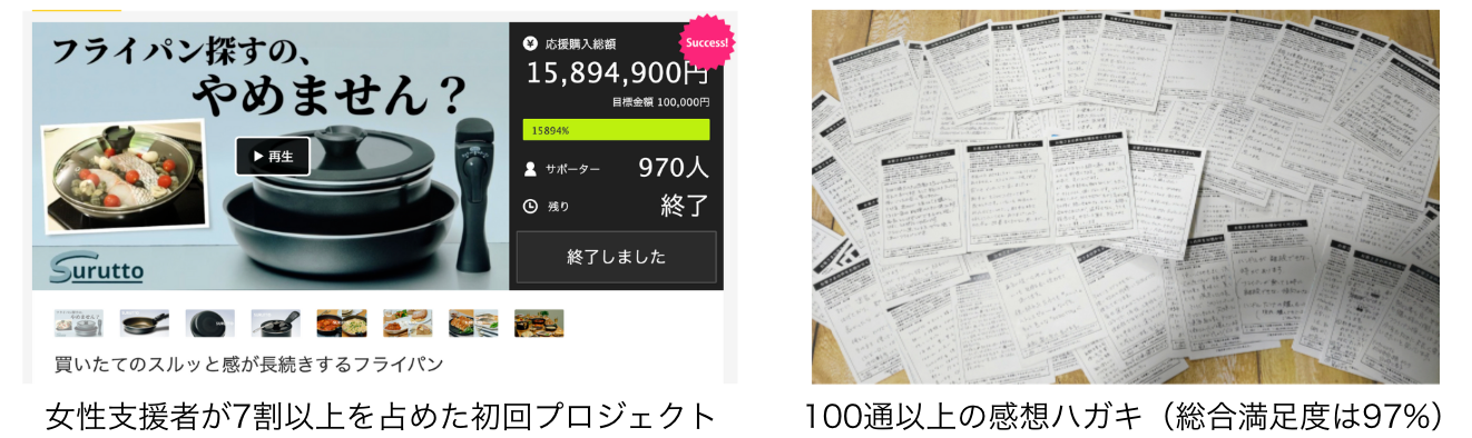 「毎日の料理を感動体験に」をコンセプトに「快適さ」を追求したフライパン『SURUTTO』は、2021年にmakuakeにてクラウドファンディングを実施、家事ストレス増加に悩む主婦を中心に支持され、コーティングフライパンプロジェクト歴代1位の支援金額が集まりました。(2023年1月時点)