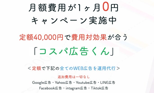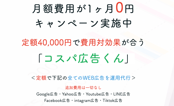 「コスパ広告くん」は定額の広告運用代行セットです。