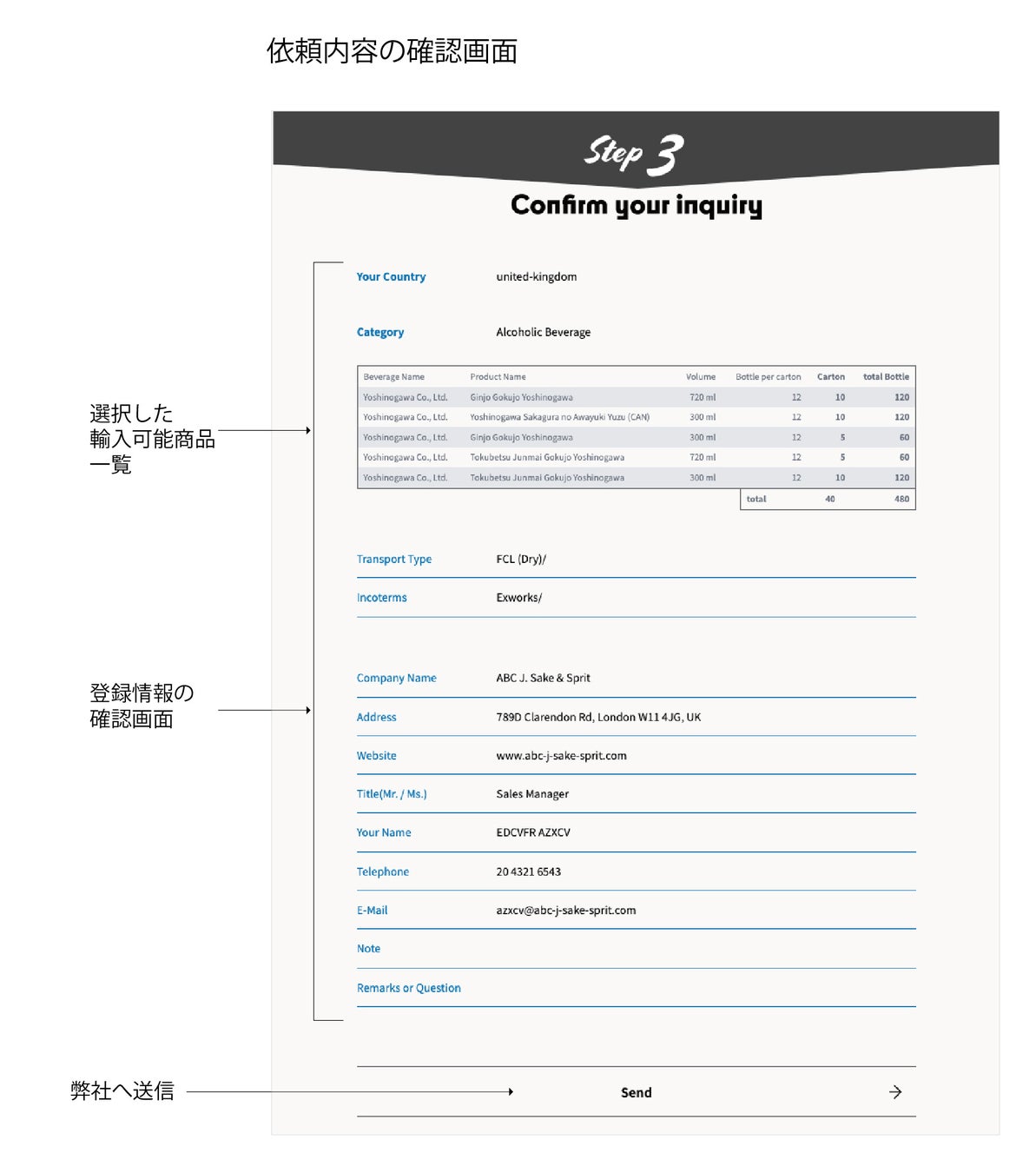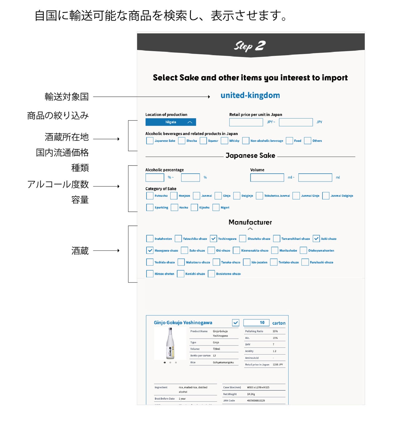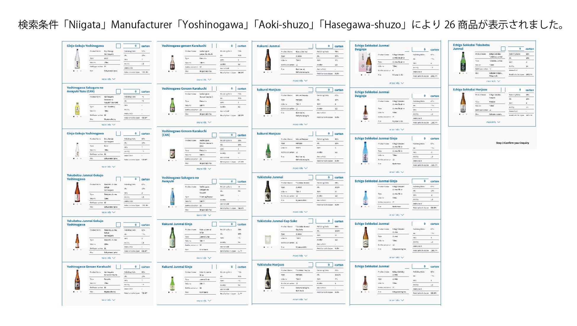 世界各国に輸出可能な日本酒が、誰でも3STEPで簡単に一覧で検索でき、迅速に見積もりを取得することが可能です