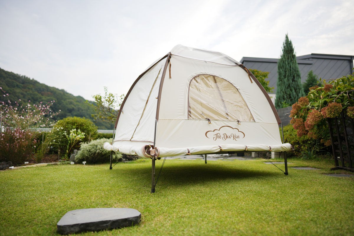 2. テントの最大の条件として快適である必要があります。THEDOOKANは、トランポリンのように弾力に伸縮する床が特徴で、優しく快適な寝心地を提供します。2 階建ての設計により、独立した寝室エリアとくつろげる1階のエリアが確保できるため、快適さとプライバシーが向上します。