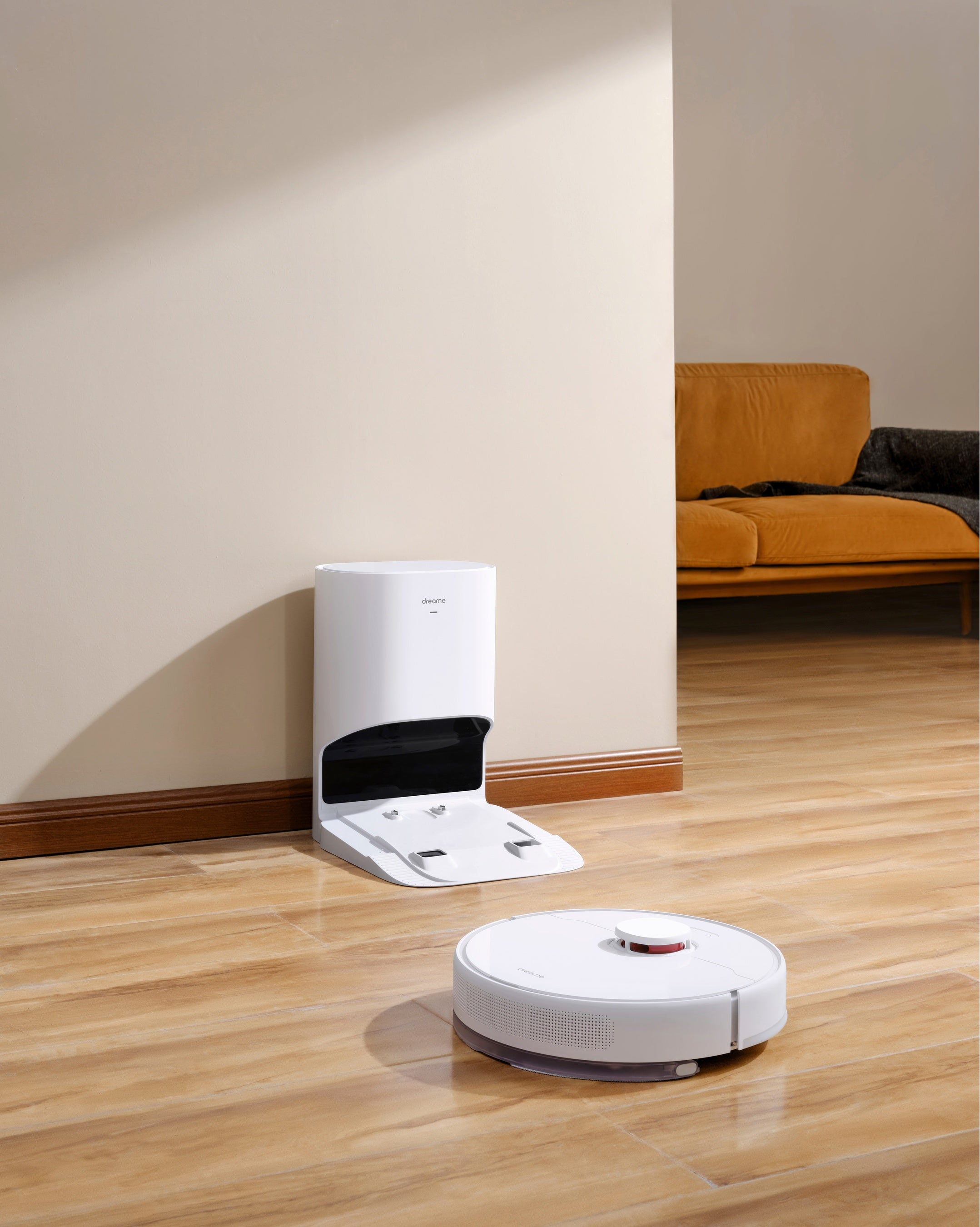 ※Dreame特許取得済みの独自技術。自動ゴミ収集時、ロボット掃除機本体のダストダンクへ「風の吹込み」と「吸引」を同時に行うことにより、ゴミがダストパックへスムーズに移動し、最小限の音で済みます。