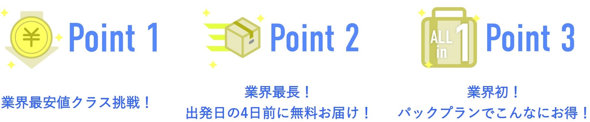ご渡航日当日の空港カウンターは混雑するため、ご渡航日4日前に宅配送料無料で商品をお届けいたします。