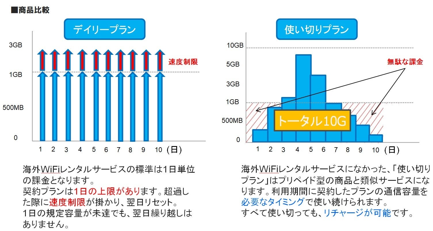 海外レンタルWiFiサービスは1日あたりの課金がスタンダートですが、無駄なく使いたいときに使いたい通信容量をご提供できるサービスを提供いたします。