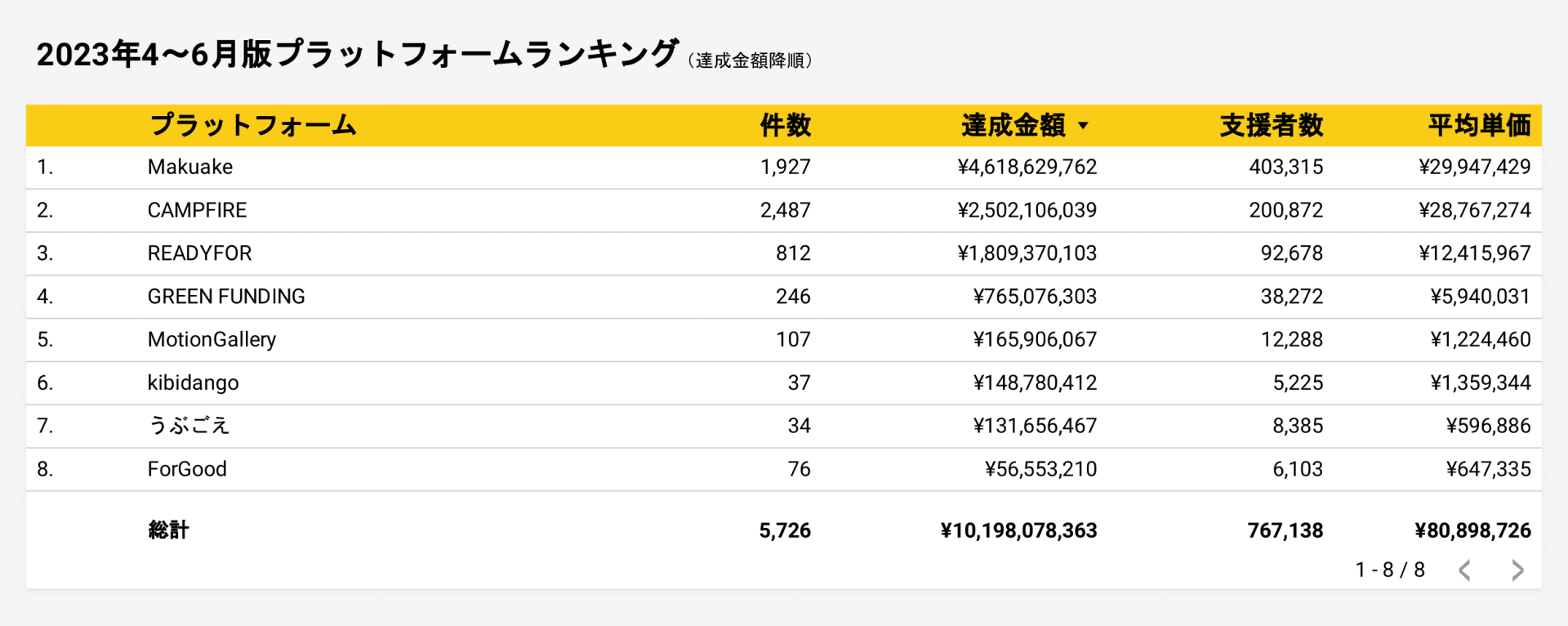 【2023年6月版】クラウドファンディングするならどこが良い?全8プラットフォームを横断したクラウドファンディング市場ランキングデータを公開!