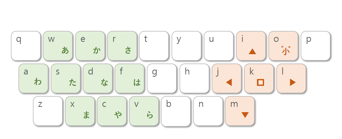 2. タイピング学習の必要なし(すでに商用化された、スマートフォンのフリックキーボード入力方法と同じため)