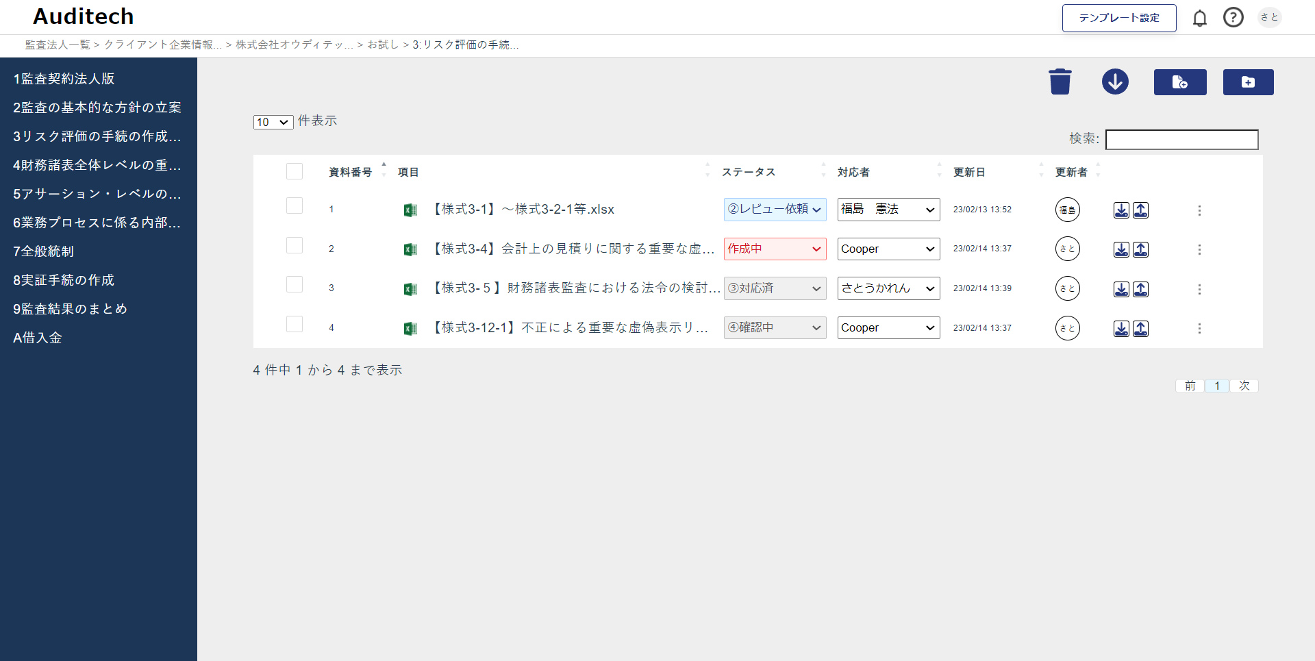 株式会社Auditech(本社:東京都千代田区、代表:福島 憲法)は、監査法人が繁忙期を迎えるのに合わせて、2023年2月14日(火)に監査調書管理アプリ「いつでもSUITES」の機能を拡充しました。