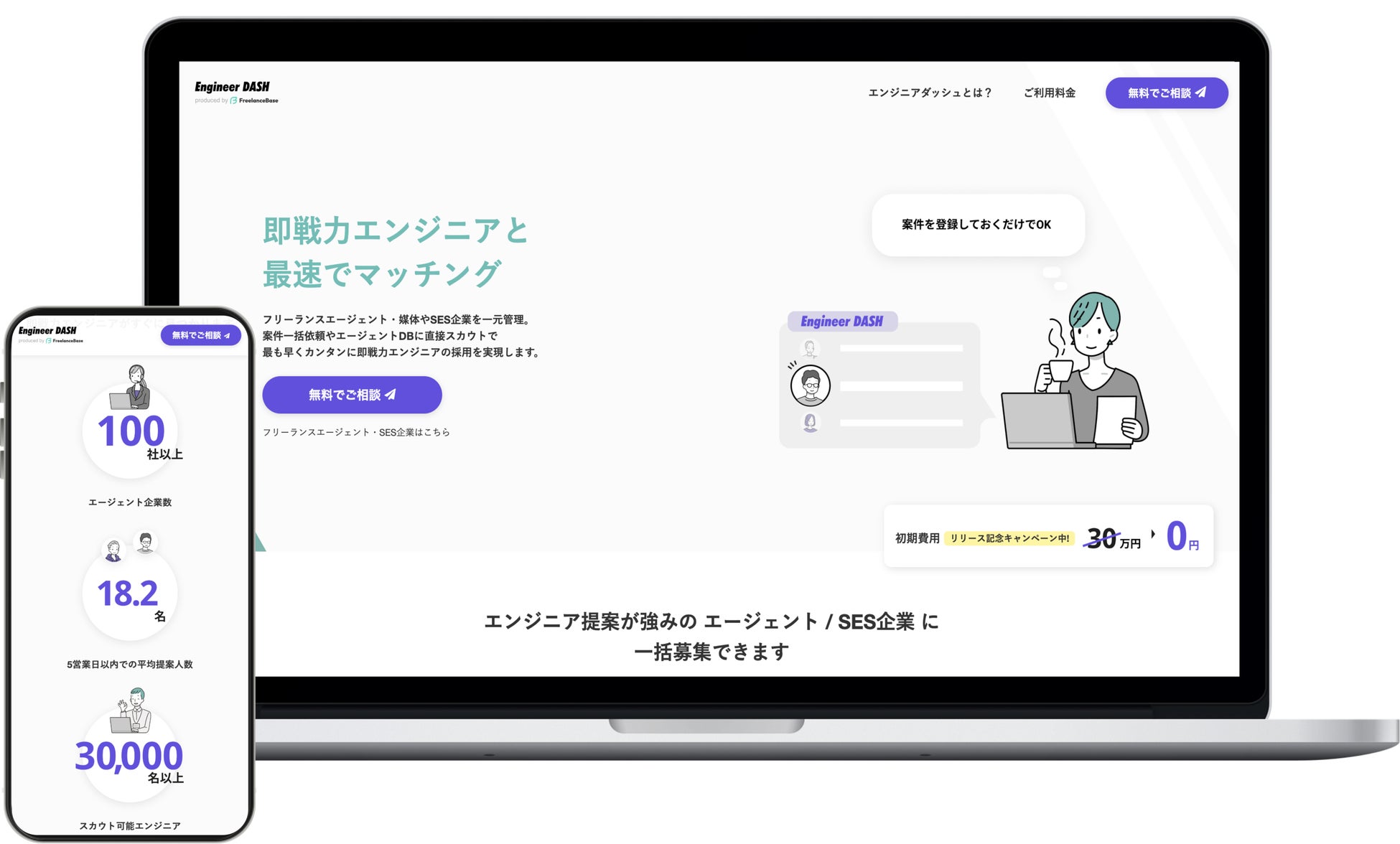 ・求人企業とSES会社・フリーランスエージェントを繋ぐ案件マッチングプラットホーム「Engineer DASH(https://engineerdash.com/)」