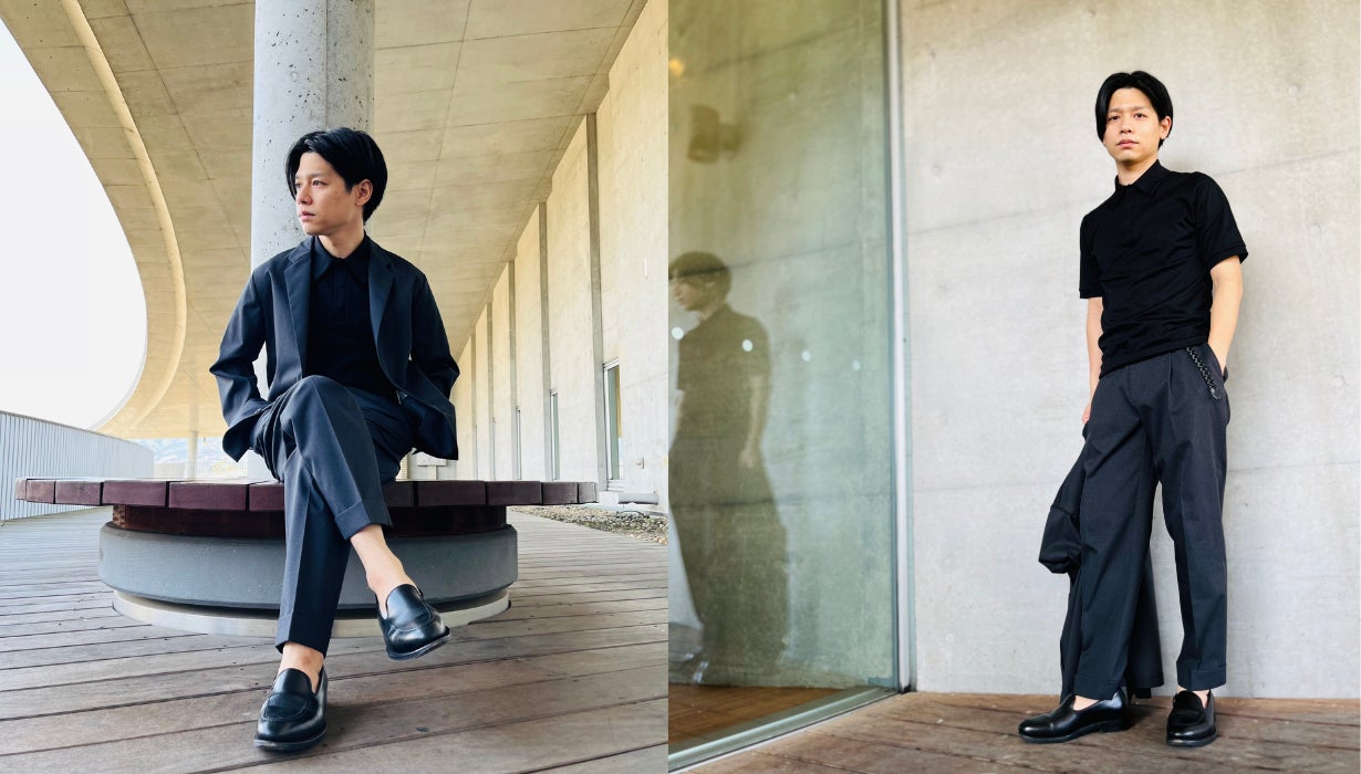 ポロシャツにノーネクタイでもジャケットスタイルがカッコよくなることを意識しています。