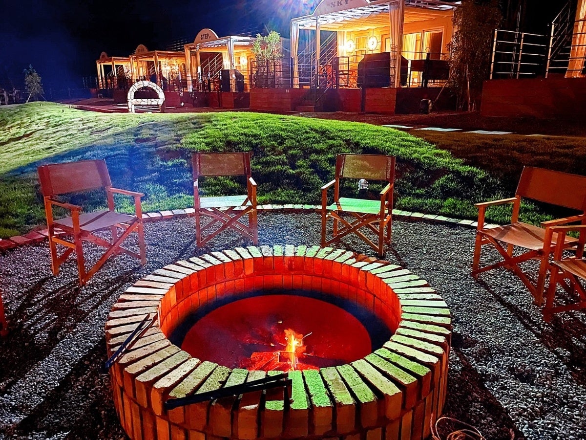 19:00頃に中庭に焚火を点灯します。「焼きマシュマロ体験」をお楽しみいただけます。