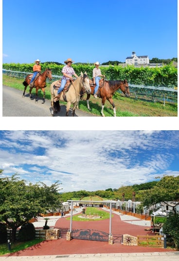 伊豆山麓と8haのぶどう畑に囲まれた豊かな自然の中で、乗馬が楽しめます。乗馬が初めての方からレベルアップしたい方、引馬体験をしたい方までレベルに合わせたレッスンを行っています。
