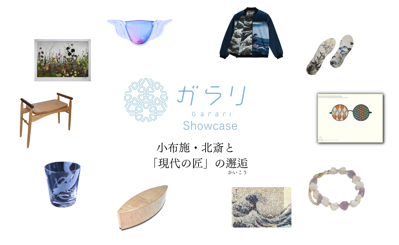 ガラリ2階には、現代のアートを展示・販売するギャラリー「ガラリ Showcase」をオープンします。 北斎館では、葛飾北斎という過去の芸術家に焦点を当てて展示を行ってきましたが、これからの小布施のカルチャーを作っていく「ガラリ Showcase」では現代に焦点を当て、小布施にゆかりのあるアーティストの作品を展示・販売する「小布施×現代の匠」、北斎の作品を現代にアレンジした作品を展示・販売する「北斎×現代の匠」の2つのテーマで発信を行っていきます。 「こんな作品を作れる人がこの町にいるんだ!」「北斎の作品がこんな形にアレンジされるのか!」といった驚きを提供し、年間100万人とも言われる小布施を訪れるお客様に対して、新たなアートとの接点を生み出していきます。
