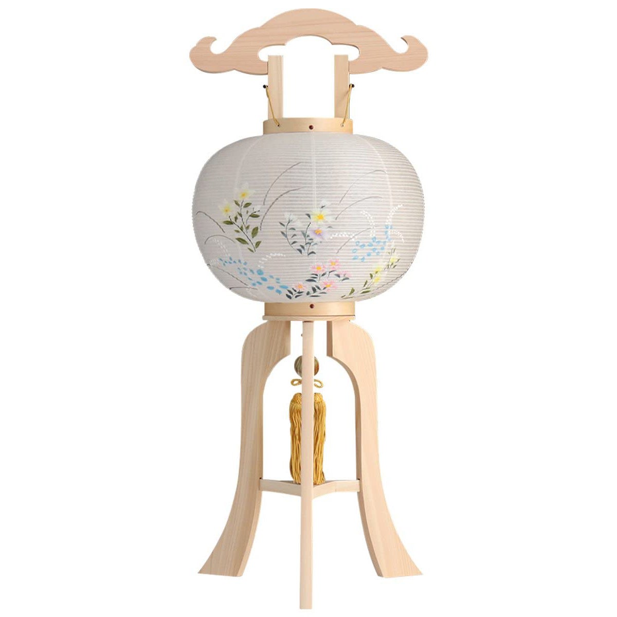 神道用のお盆提灯は、古くから桧など白木で作られた「三本脚」の形状をしています。火袋(ひぶくろ → 明かりを映し出す袋)は白無地、または家紋や墨絵が入ったシンプルなものでした。しかし近年は習慣にとらわれず、白色を基本とした菊の花、淡い色の花など、華美ではない清楚な絵柄のデザインも受け入れられるようになりました。今回発売された神道用の盆提灯では、形状も三本脚ではなく円筒形や行灯型など、インテリアに使われるモダンな和照明に近い製品となっています。