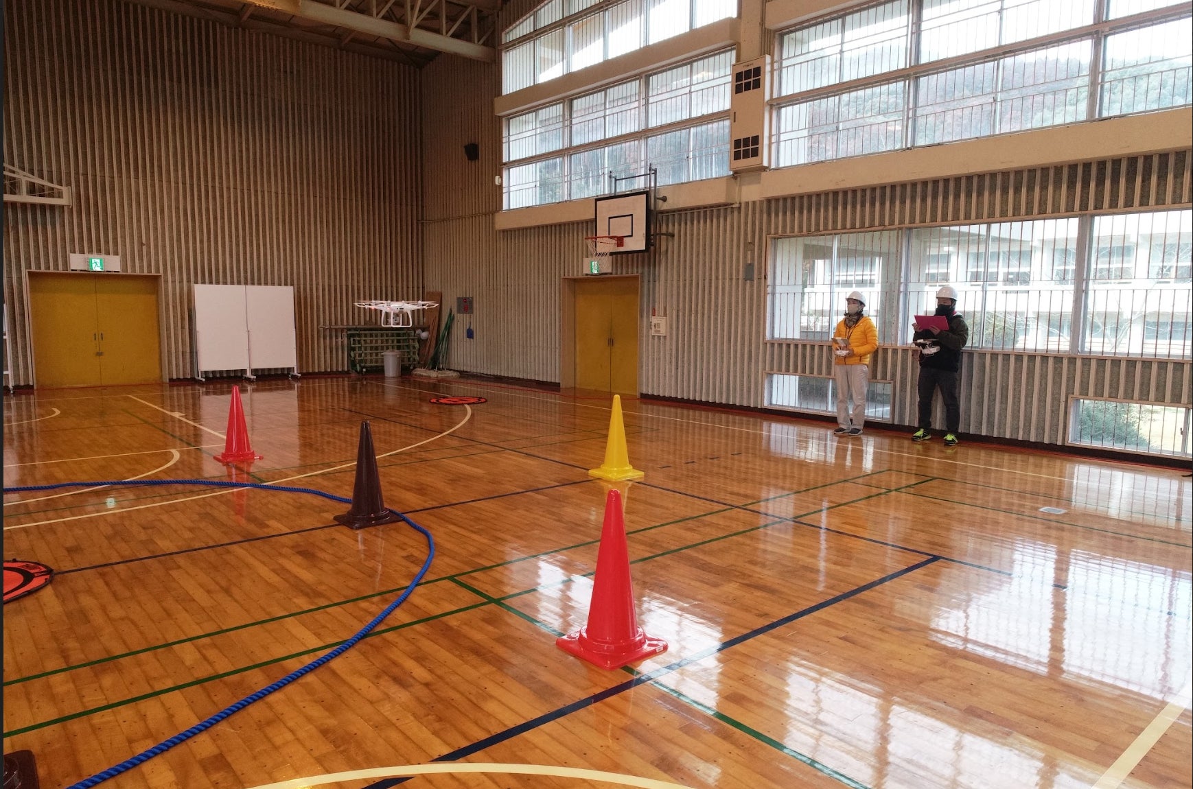 広大な実技訓練場と雨天時でも講習可能な屋内体育館を有しており、より実践的な夜間飛行や目視外飛行、物件投下訓練などが行える教育プログラムを提供します。