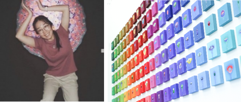 1999年愛知県生まれ。 多摩美術大学絵画学科油画専攻卒業、多摩美術大学大学院油画研究領域在学。人として暮らしている中で感じた刺激を、布にペイントや刺繍をして蓄積し作品制作を行っている。