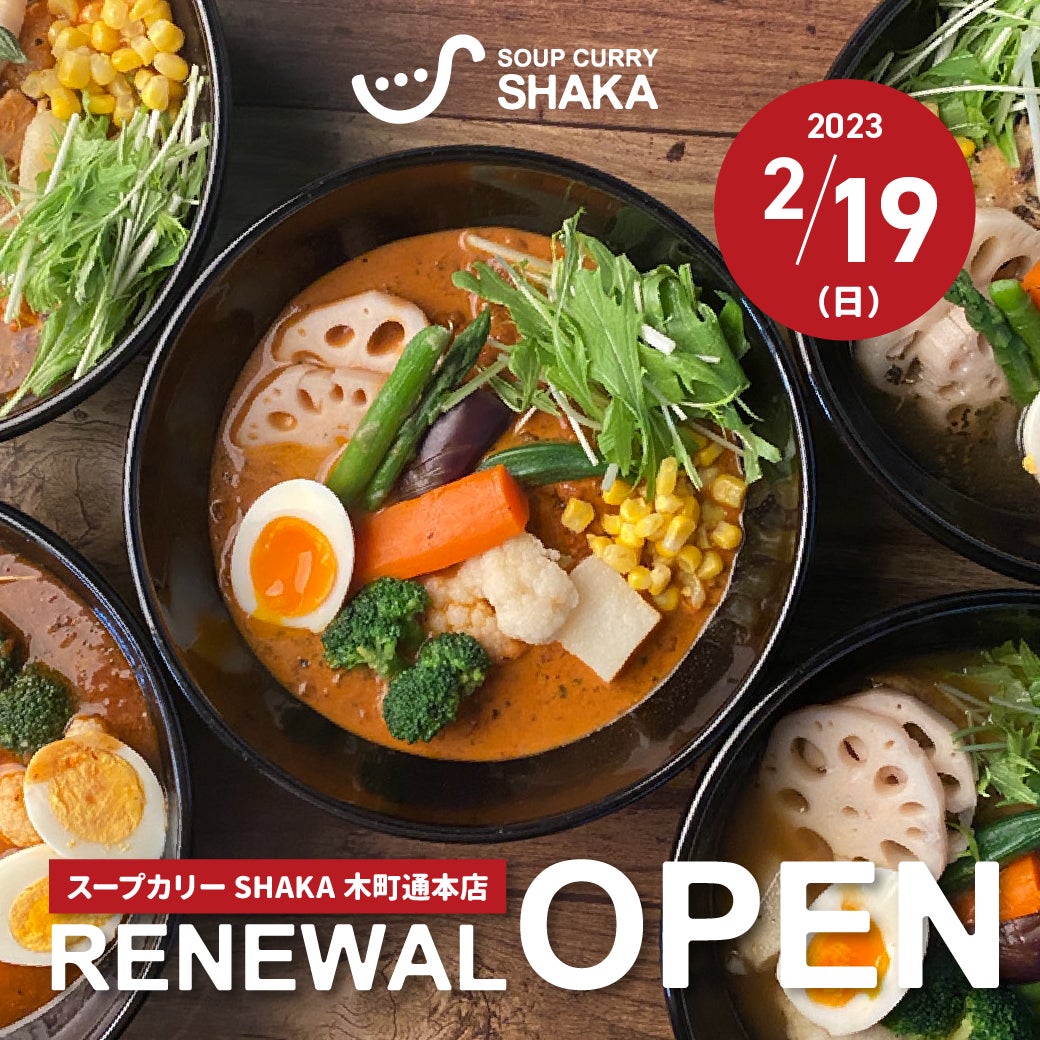 株式会社ラッシュビズ(本社:宮城県仙台市青葉区本町、代表取締役:岡崎義弘)は、スープカリーSHAKA木町通本店を2023年2月19日(日)にリニューアルオープンオープンいたします。