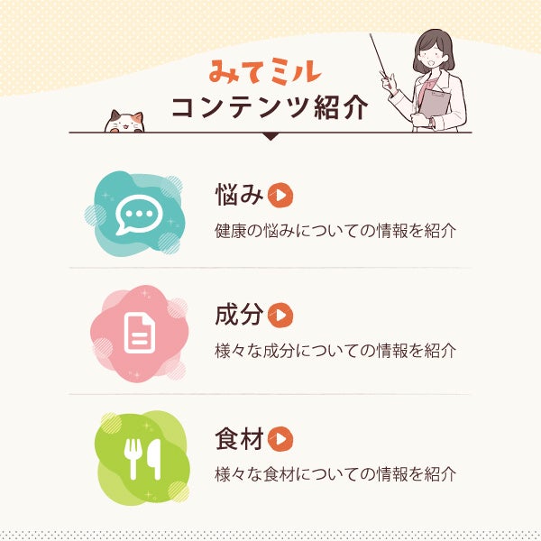 そんな健康に対しての疑問やお悩みを解決してほしい想いから、「みてミル」は誕生しました。