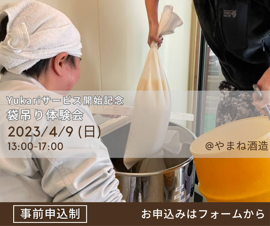 『Yukariサービス開始記念 袋吊り体験会@やまね酒造』