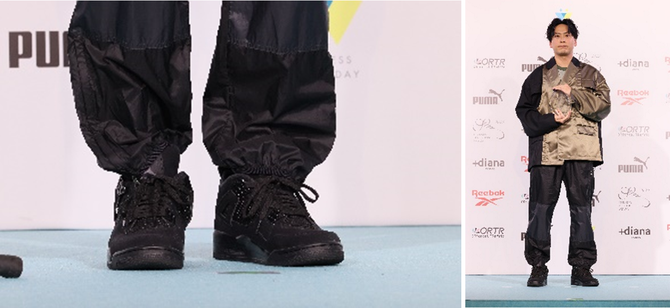 宮世琉弥さんは、「このような賞を受賞できて感謝でいっぱいです。この賞にふさわしい人間になれるようにがんばります。今までトロフィーをもらったことがないので、とても重たいです。初トロフィーです。今後もこの重みを背負って生きていきたいです。」と初めてであるというトロフィー受賞の喜びを述べました。着用しているスニーカーについて質問されると、「僕は 2004 年生まれなのですが、歴史ある、まだ僕が生まれてないスニーカーを履けてとても嬉しいです。」とコメントを述べました。