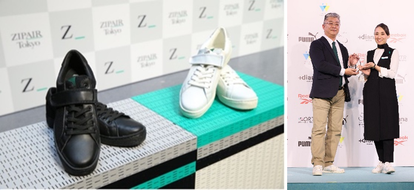 さらに今年度は、客室乗務員制服としてスニーカーを採用し、男女ともに靴底の平らなスニーカーを採用することで、業務中の疲労感の軽減策を取るなど、ニューノーマルなワークスタイルを追求しているZIPAIR Tokyoを【特別賞】に選出。同社代表として、西田真吾代表取締役社長を表彰いたしました。