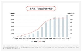 令和3年度で約6,000名の隊員が全国で活動していますが、この隊員数を令和8年度までに10,000人に増やすという目標を掲げており、この目標に向け、地域おこし協力隊等の強化を行っています。