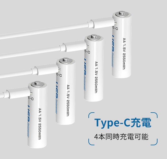 - 専用の充電器はいらない、電池を4本同時に充電!