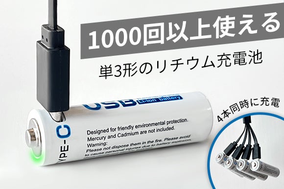1000回以上繰り返し使用可能!専用充電器不要!4本同時に充電可能な単3形リチウム充電池「pttearth」
