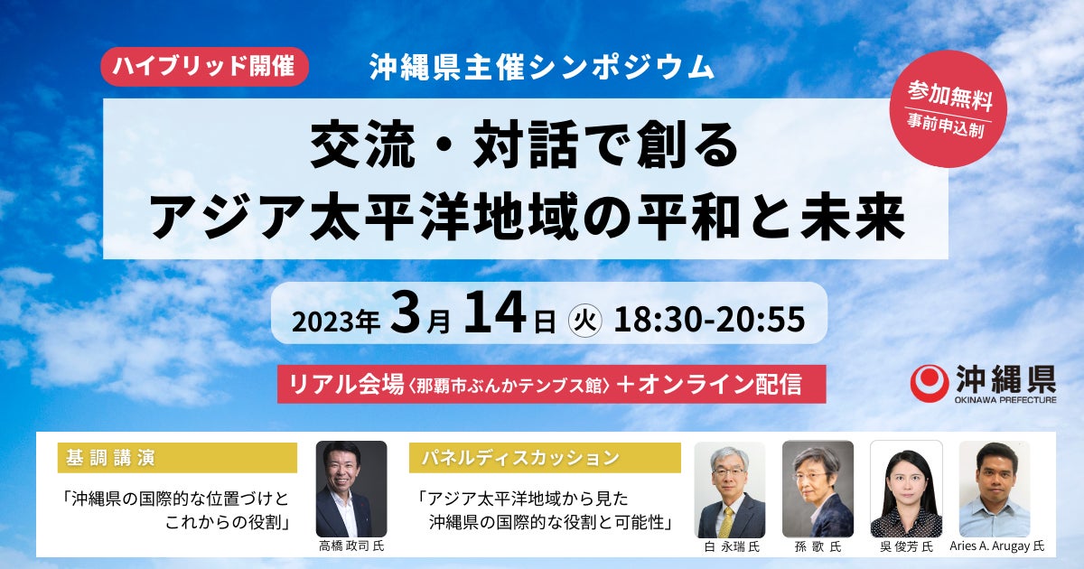 沖縄県主催シンポジウム「交流・対話で創るアジア太平洋地域の平和と未来」を3月14日(火)に那覇市ぶんかテンブス館およびオンラインにて開催