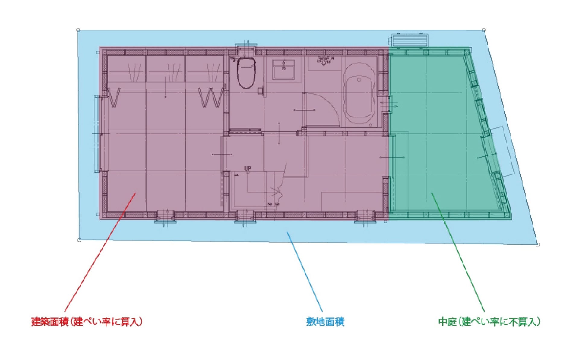SMALLAは、敷地面積10~20坪という小さな土地で建てる狭小住宅です。しかし、そこには空間を最大限活かすためのアイデアがたくさんあります。例えば、敷地面積に対する建築面積の上限(建ぺい率)にカウントされない屋根のない中庭や、敷地面積に対する延床面積の上限(容積率)に含まれないロフトや吹き抜けなどです。これらのスペースをうまく設計することで、建物をより広く使うことができるのです。