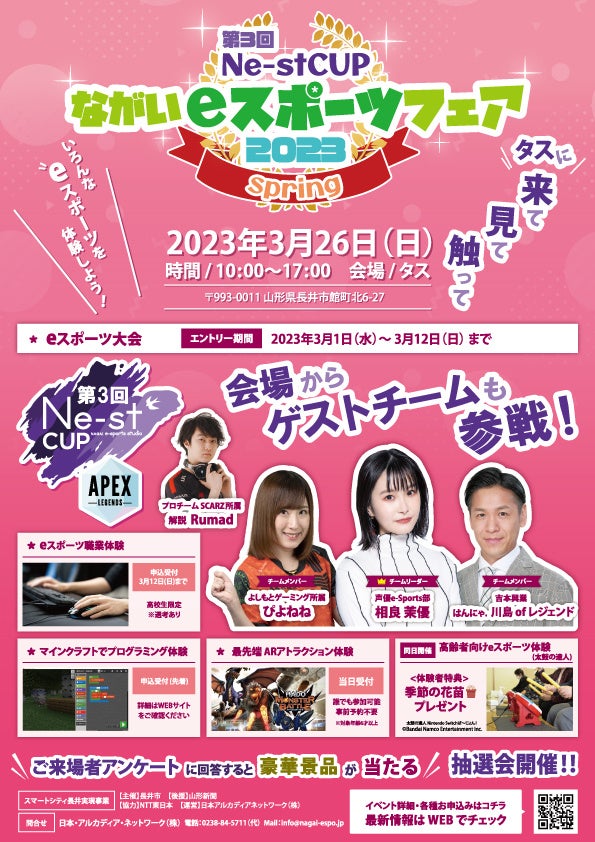 長井市では、交流拡大やデジタル人材の育成を目的に『第3回 Ne-st CUP・ながいeスポーツフェア2023spring』を開催いたします。