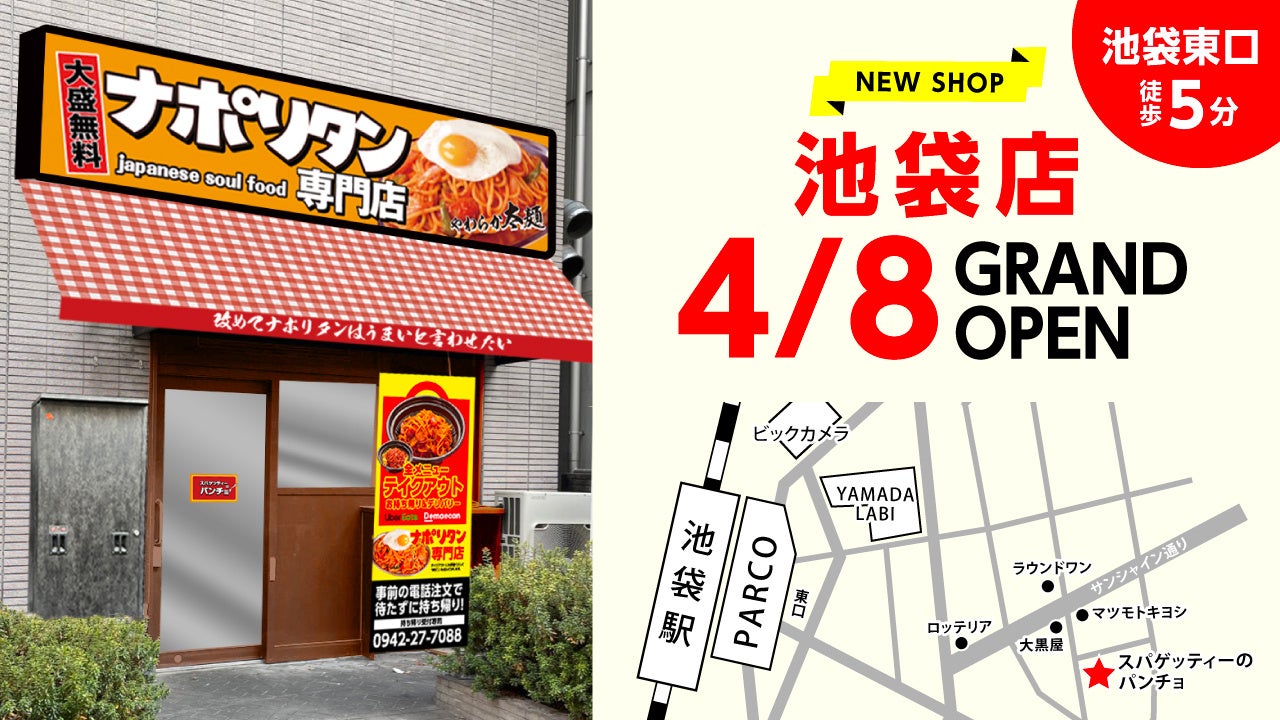 【復活、 パンチョ池袋店!!】 4/8(土)池袋東口に『スパゲッティーのパンチョ 池袋店』がOPEN