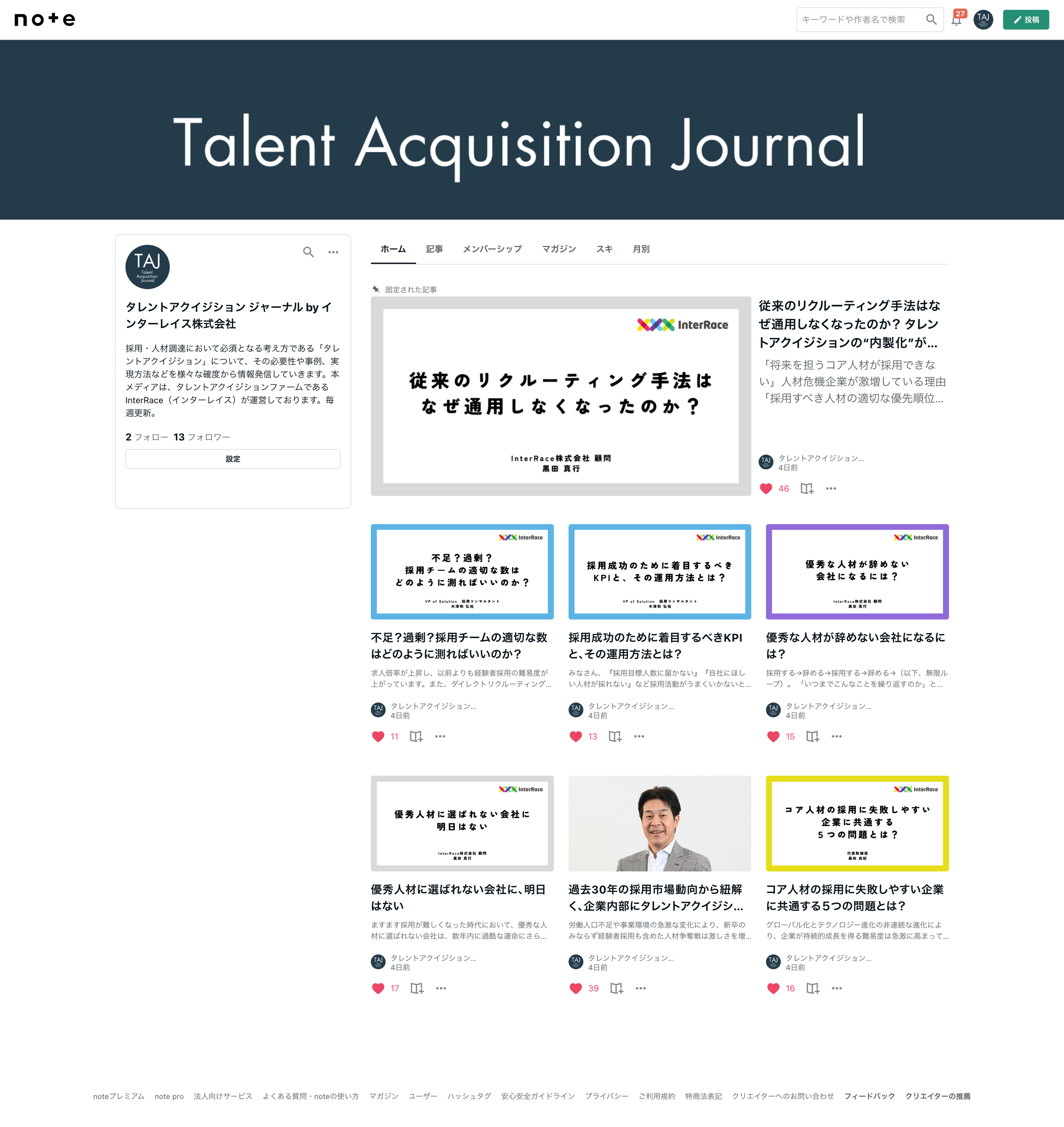 タレントアクイジションジャーナル:https://note.com/interrace_taj