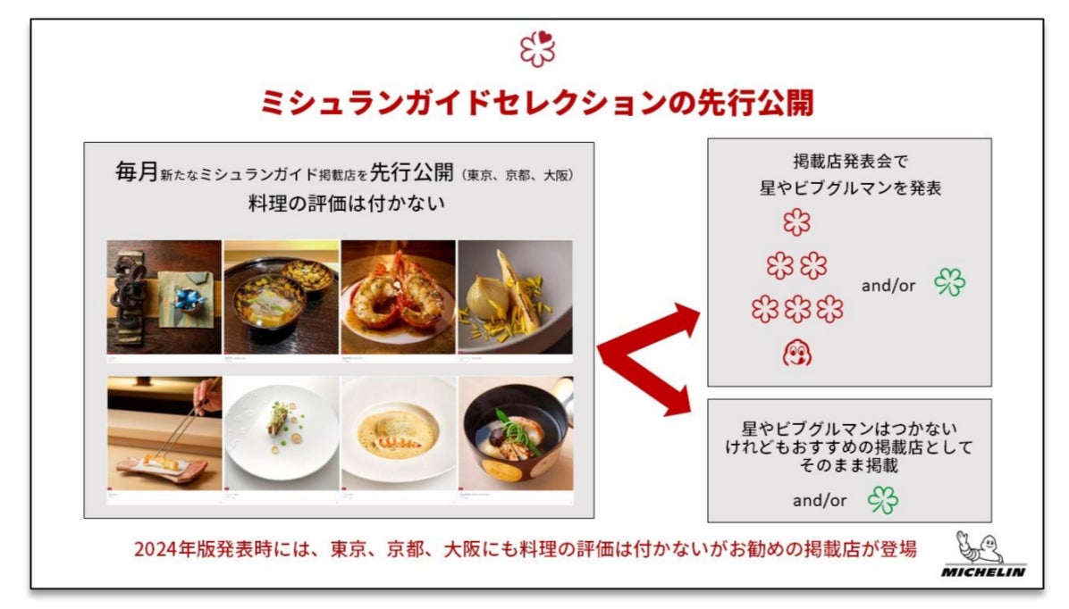 先行公開されたセレクションには、星やビブグルマンの評価は付きません。評価は、年一回開催されるミシュランガイドセレモニー(評価発表会)で公開されます。