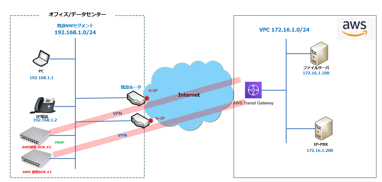 2台のAWS接続BOXで、VRRPによる冗長構成を組むことができます。