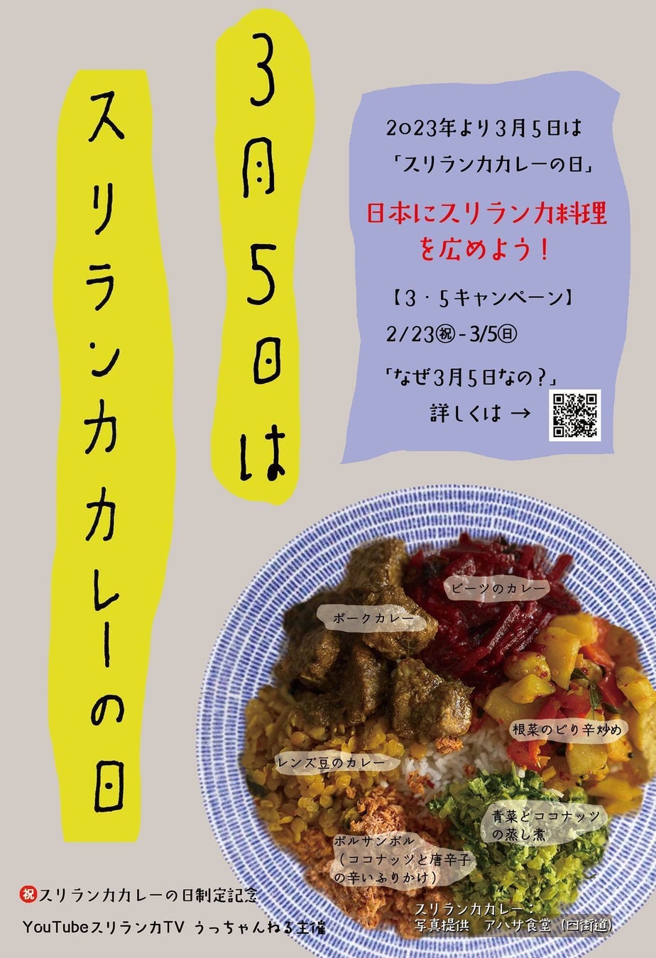「スリランカカレーの日」登録を記念し、2023年2月23日(木・祝)〜3月5日(日)まで、全国のスリランカ料理店にご協力いただき、特別キャンペーンを開催します。