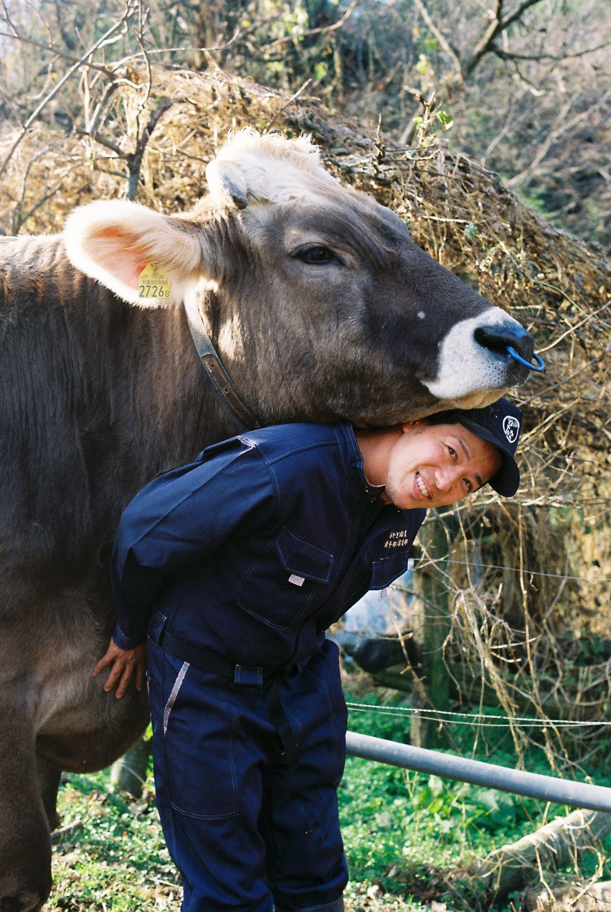 2019年、私たちは乳牛として飼育いているブラウンスイスに黒毛和牛の種を付けて得た雄牛を育てました。「健康に育てた牛はきっと美味しい。そうであって欲しい」という信念のもと、自由に遊ばせて牧草を食べさせ、冬は牛舎に入れて自家栽培した穀物や配合飼料を与えました。急がずに30ヶ月をかけて飼育した「きたろう」は人なつっこく、非常にかわいい顔で、地元の子どもたちにも人気でした。